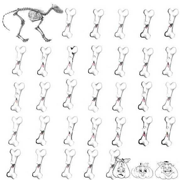 Print out this page and help him find it by following the happy bones.