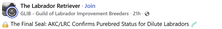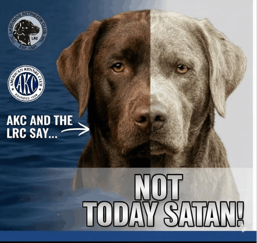 The Parent Club for each breed makes and sets the breed standards, not the AKC! In the AKC’s own words: “The official standard for each breed, and any revision thereof, originates with an AKC parent club, the national organization devoted to a particular breed. ” In the original article (below) I said: The LRC, Inc. will never recognize this color. Fast forward to 2025 – How wrong one can be! I must correct that statement – No REPUTABLE LRC Inc. Board would ever recognize this color. …and no *reputable* breeder of purebred Labrador Retrievers ever will.