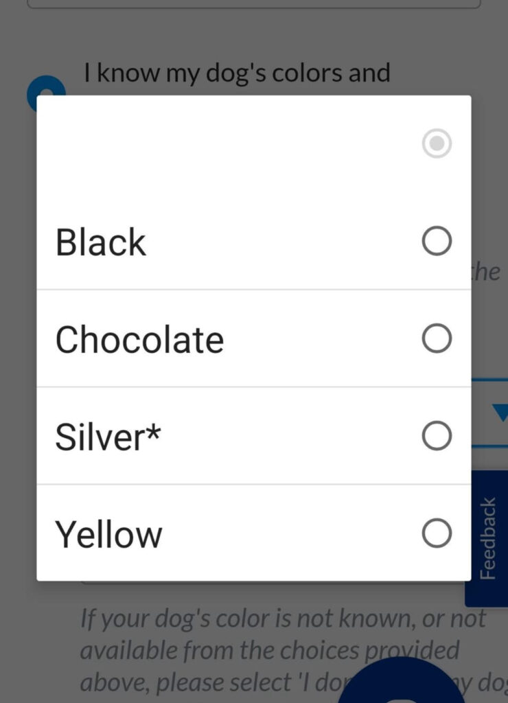 A purebred breeder who was registering her litter found “silver” in the dropdown menu: